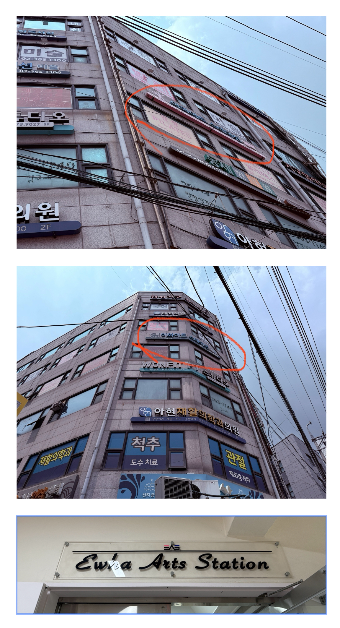 외부(외벽)간판 2개, 건물 내 아크릴간판1개